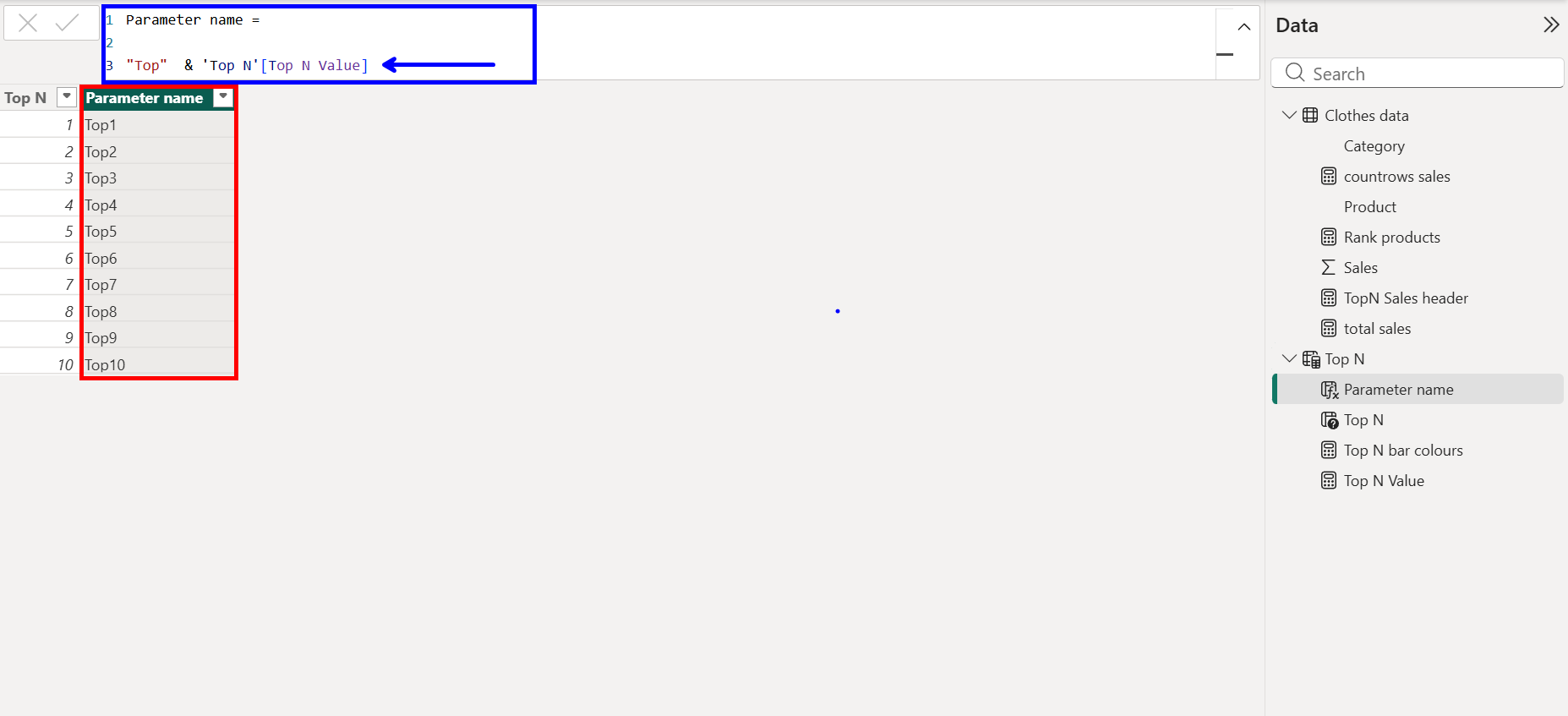 Now that we have our parameter values, lets give it a nicer name to place on our Top N buttons later on.