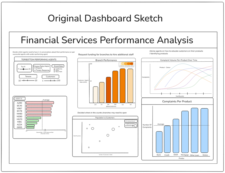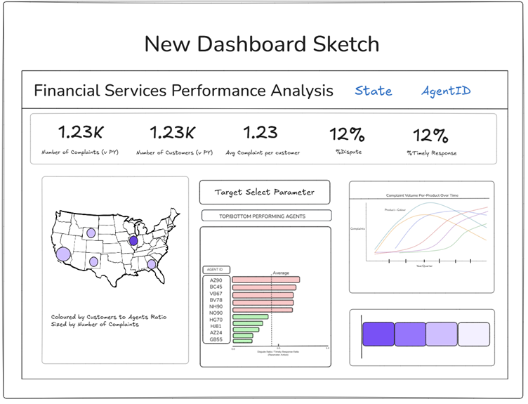 Having planned out the new design, building out the dashboard was fairly straight forwards, although time was a big factor in the final dashboard. There were a few interactivity elements that I was also unable to create within this timeframe (e.g. State and Agent ID Filter identifiers), however having this plan when presenting to the client, they had an idea of how this would have turned out.