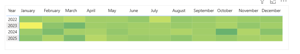 This article covers my investigations on how to create a heatmap in Microsoft Power BI. By heatmap I refer to a Table Heatmap and not to the geographical one. Heatmaps can be useful for exploring data with many values and/or feature and to display deviations or outliers. It can serve for a first overview before investigating further. Colored cells usually can be processed way quicker than a table full of values.
