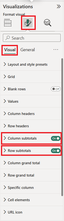 Visualization Pane > “Format Your Visual” Tab > Sub-Tab “Visual” .