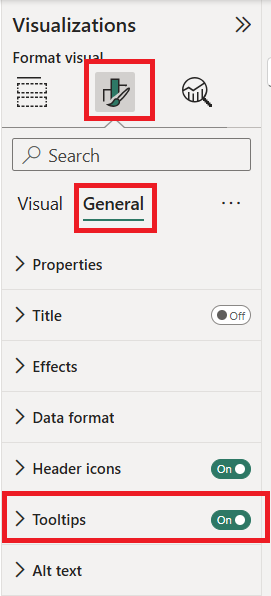 Visualization Pane > “Format Your Visual” Tab > Sub-Tab “General”