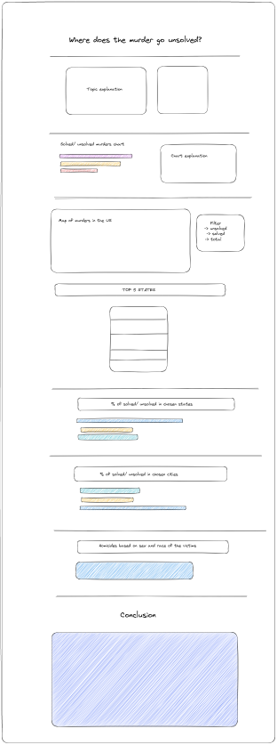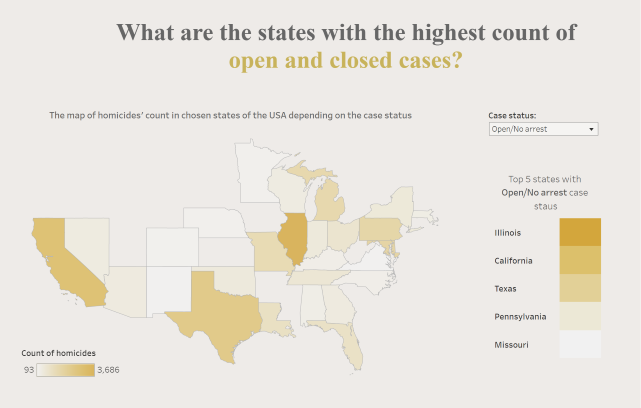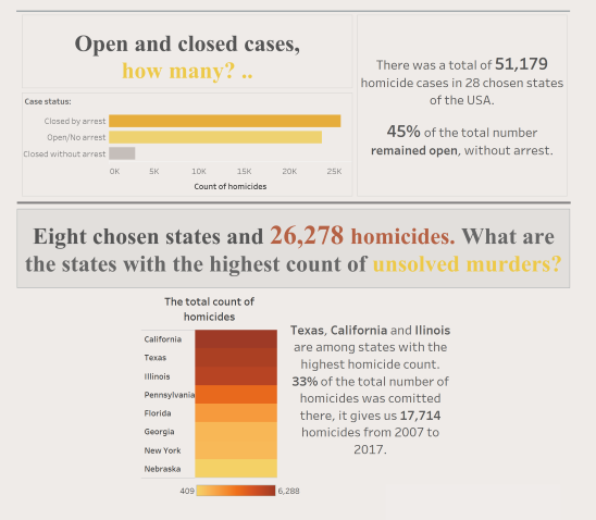 I knew, even before opening my Tableau Public profile, that I would like to remake my first application viz that was inspired by data collected by journalists from The Washington Post about unsolved murder cases in the USA. Gladly enough, I remembered feedback given by Carl Allchin during my first interview, so that was a good start.