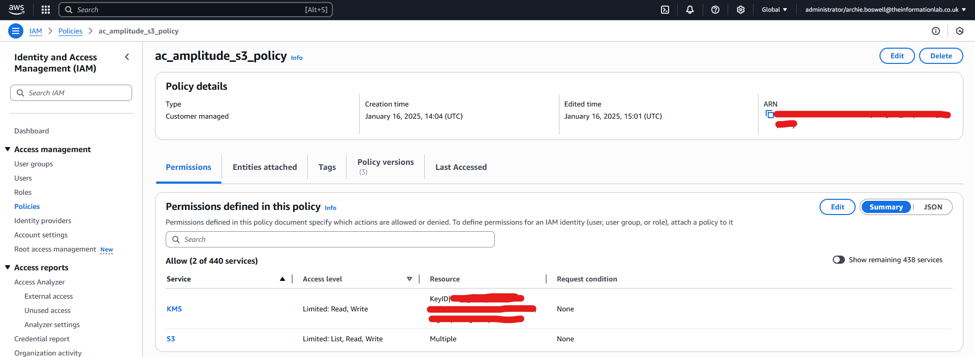 Here you can see any other services that apply to this policy, and this is where you access your ARN key (top right).