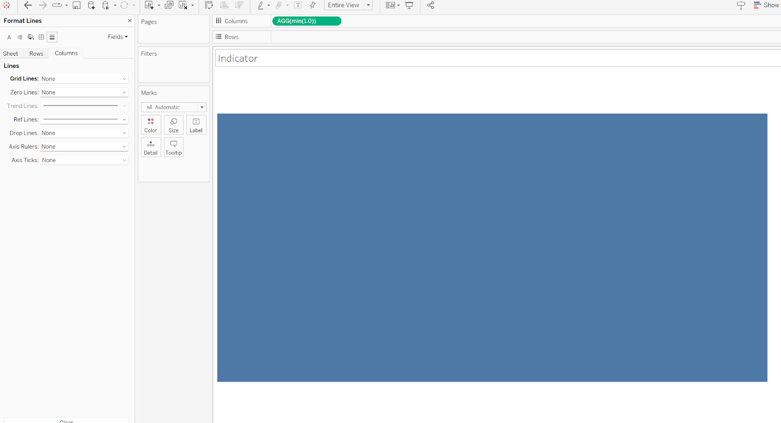 MIN(1.0)directly onto the Columns shelf - Remove all axes, borders, gridlines, and titles