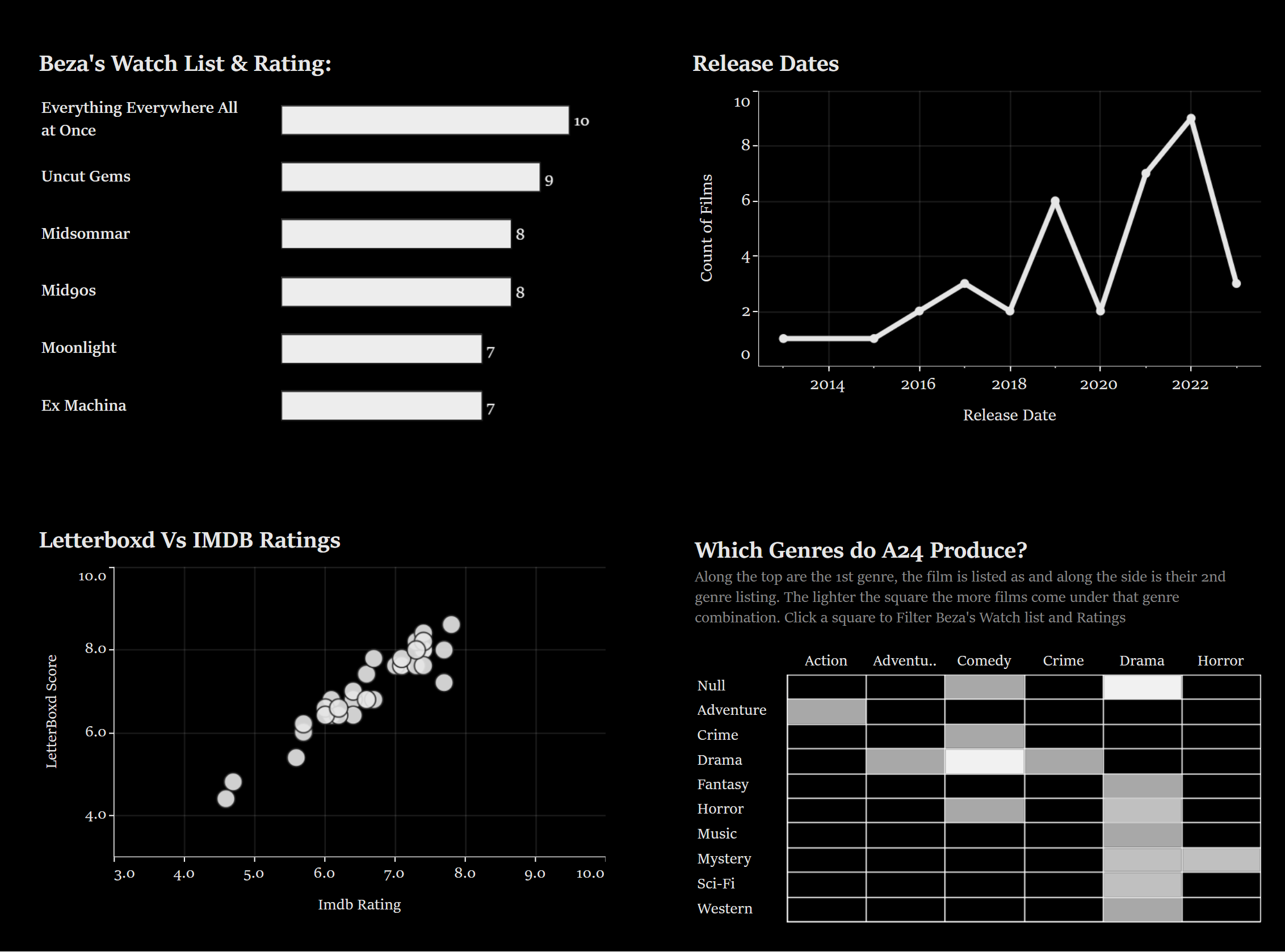 After Downloading the Data set, I knew that I wanted to narrow my scope down to a particular Producer: A24. The Data set was very large and took a while to process in Tableau/Prep. So I started off sketching some ideas based on a user story, shown below:
