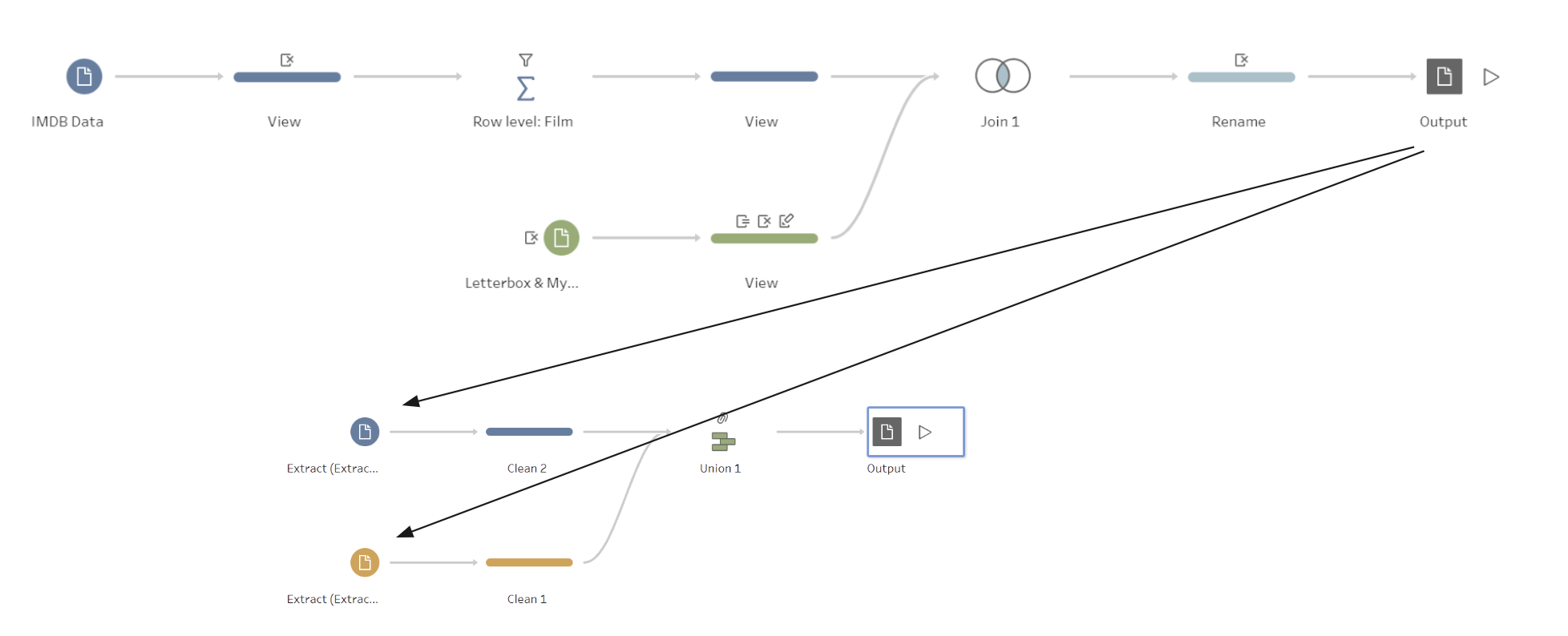 I then prepared the data using Tableau Prep, to join on Letterboxd Ratings and My own, as well as aggregating the data so that each row was a different film.