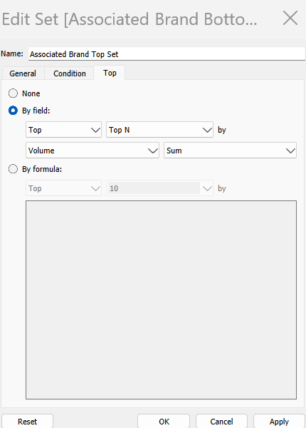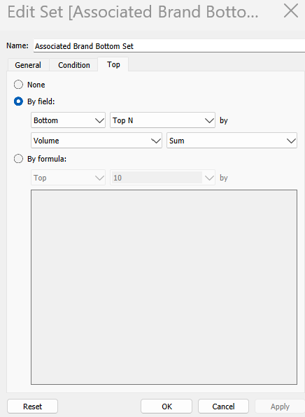 Each set should be created based on a field, using the measure that determines ranking — in this example, Volume.