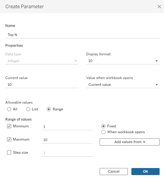 Step 1: Create a Parameter for Top N
