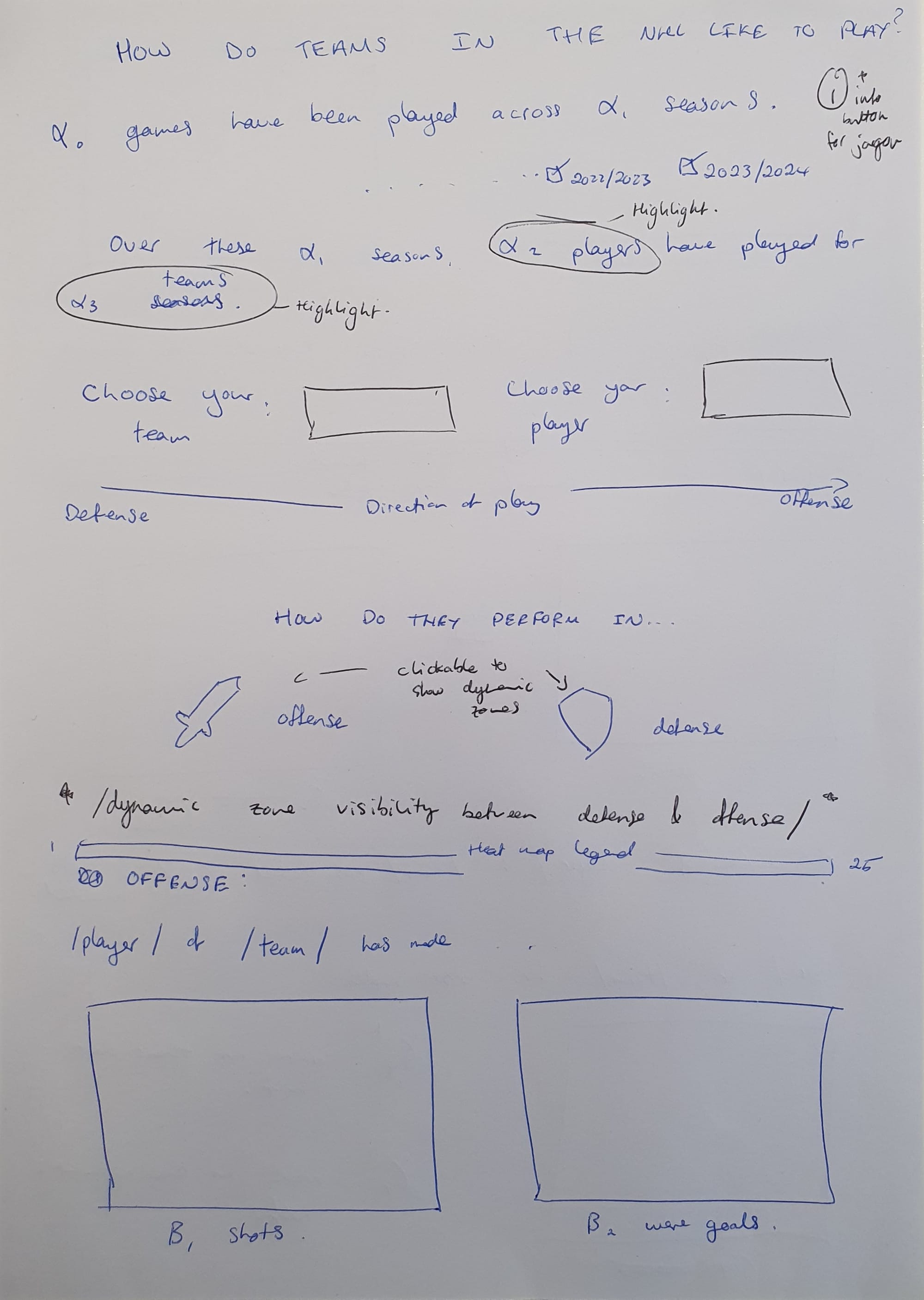 A few questions I wanted to attempt to answer came to mind when I explored this visualisation. Does each team in the NHL play in a particular way? Are some more aggressive in defense? Which positions should attackers find themselves in if they want to convert chances into goals? How have teams performed from season to season? Have any improved or declined?