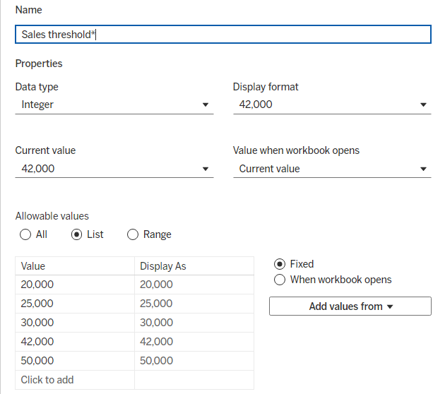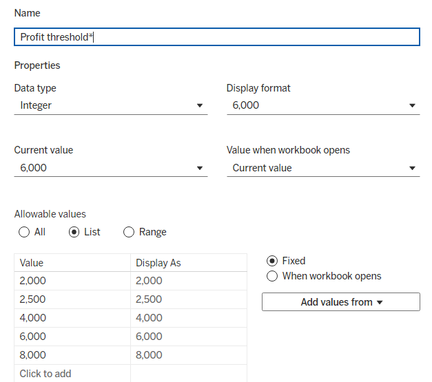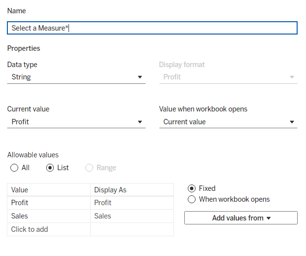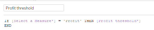 This tells us that when the user selects the profit measure then we should only display the Profit threshold