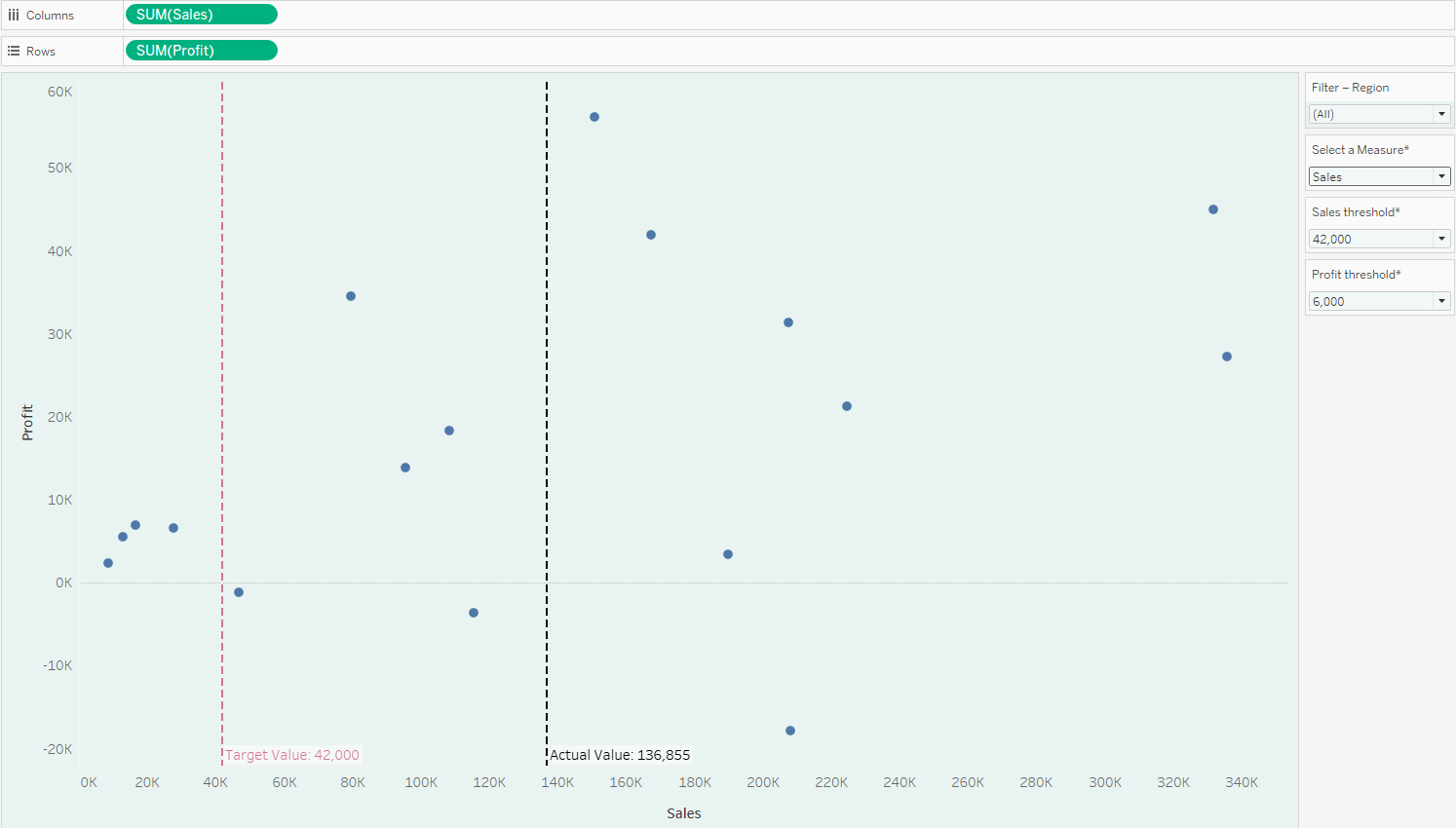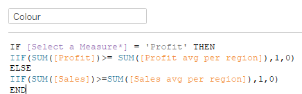 Once again it checks the parameter to pick Sales or Profit, then uses the IIF function to test if the average is above the selected measure threshold.