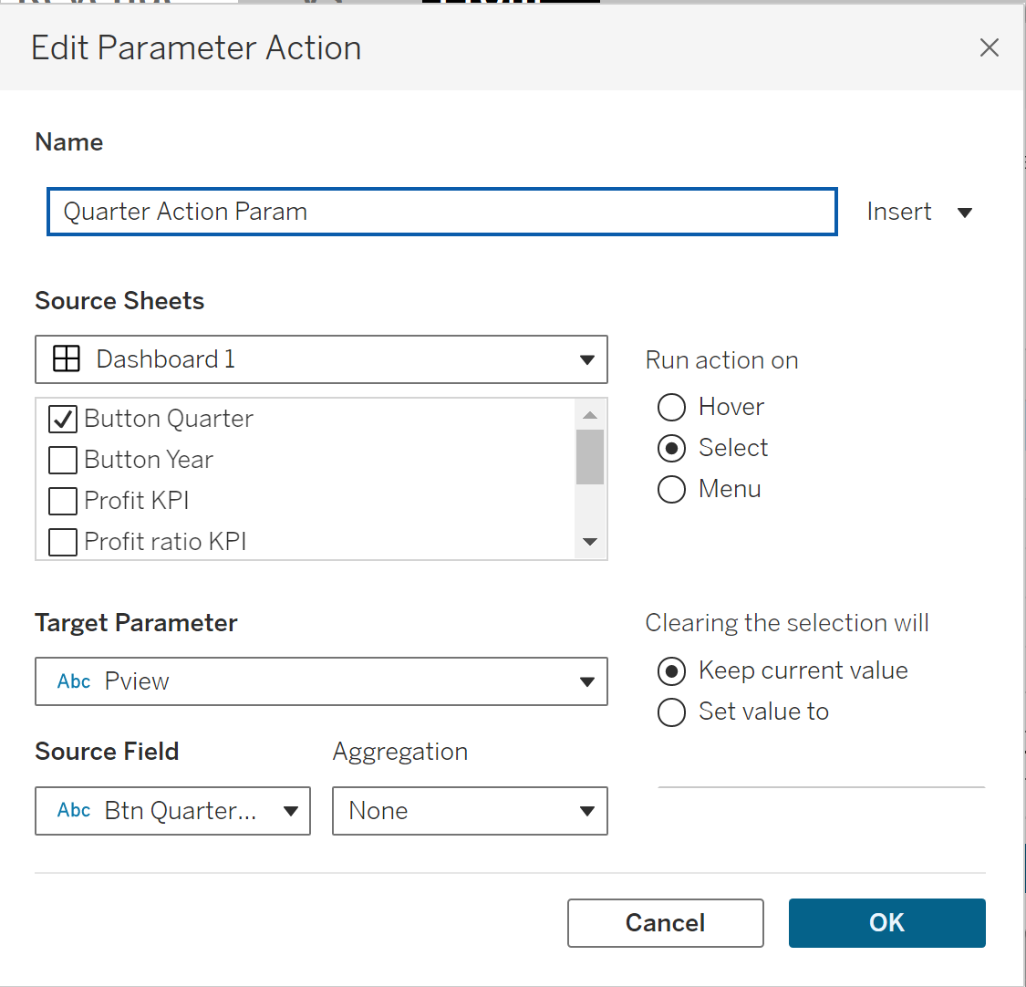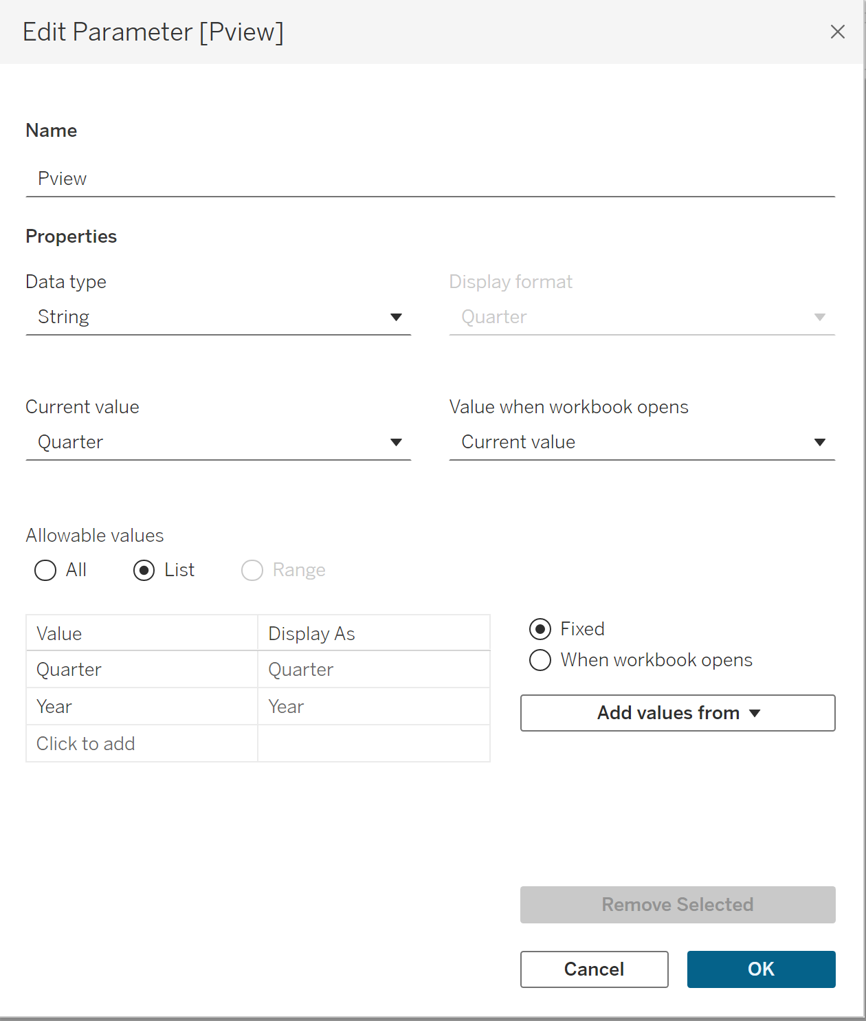 The first step is to create a parameter to seperate between the two views we want to switch between