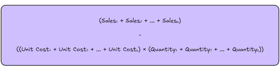 -  ( SUM(Orders[Unit Cost]) * SUM(Orders[Quantity]) )