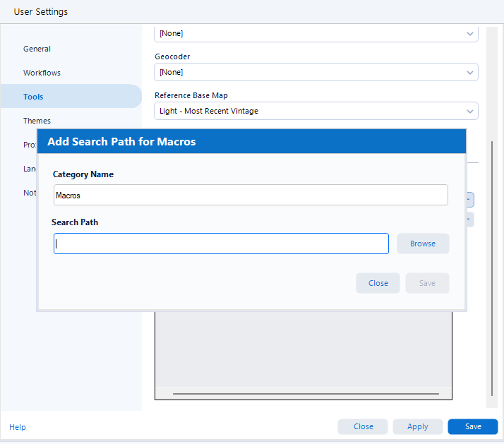 Step 3: Go to the tools tab and scroll down to the macros section. Then click the little plus icon to add your macro with your new file path to your folder.