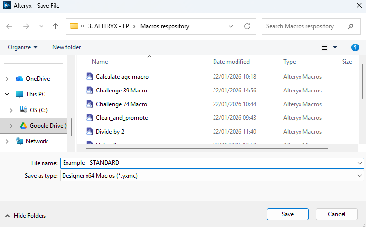 Step 5: Save it all! Make sure that it's being saved in your macros repository as a macro file. The file name that you save it as will be the name that comes up in your repository so I would recommend calling it something that makes sense. Don't use the examples that I have in the screenshot because I have no idea what many of them do!