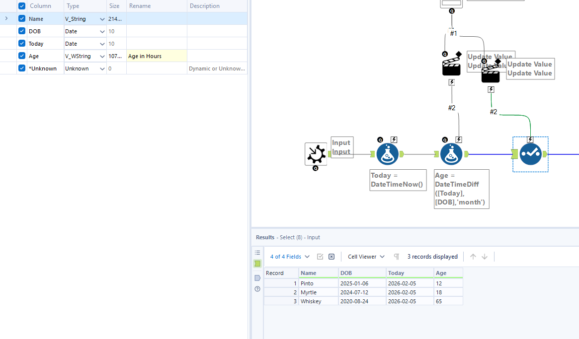Your standard macro is probably what you're thinking of since I described it in the introduction. It is very simply a set of tools which can then go into your workflow in the form of a little macro package. In this example, we're going to create a calculate age macro. This is perhaps a less simple starter macro but it gives a better insight into what a macro can do. I'll start by doing the more 'standard' part and then adding a little more fun!