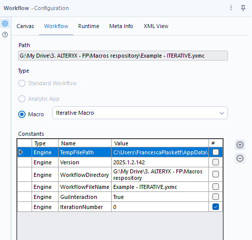 Step 5: Make your macro iterative by going to your workflow configuration. If you're not sure where that is, left click on the white space of your canvas and it should pop up on the left of your screen.