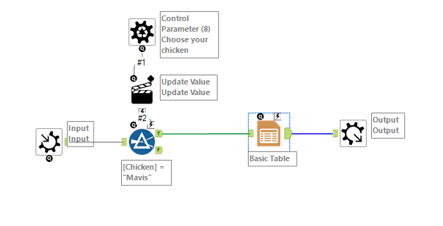 Instead of using the filter, like in step 2, you can just add the basic table directly into the next step. Then continue with the macro inputs/outputs but set up your control parameter so that it's floating in the workspace.