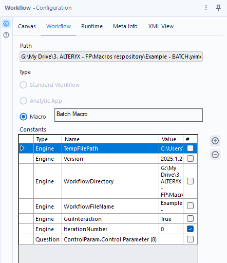 Step 6: Check that the macro is set up as a batch macro in your workflow configuration. It should do this automatically though when you add your control parameter.