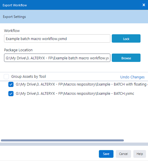 Now that you've created a fantastic workflow including your macro, you understandably want to share this with the world. However, you can't share the workflow on its own as people don't naturally have access to your self-created macro. To get around this you can create a packaged workflow, like you would in Tableau for example so people have access to your data as well.