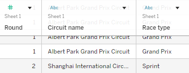 Step 1: Create a chart with differing views. You can just create this as normal without changing anything for the toggle. The toggle example I'm explaining today works if you have two different categories within one field that then impact other values in the data. For me, this was my podium for the different rounds in Formula 1. If you're not familiar with the sport, in some rounds there are two races so I wanted to create a toggle where I could switch between the view of the 1st, 2nd and 3rd place finishers for each race in those rounds. The race type (grand prix vs sprint) was one field so to make this work in a like for like way, you will need a categorisation field in your data too. For example, imagine sample superstore had two categories instead of three. You would then be able to create a chart showing sum of sales over time and toggle between whether this was for the furniture or office supplies category. Below you can see what a couple of rows look like in my data if it's still not making complete sense.