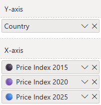 Step 2: Drag your fields onto the axes - Country onto Y and Indices onto X in this case.
