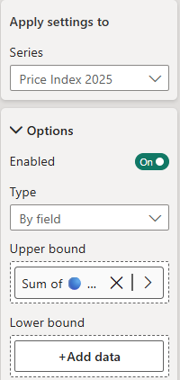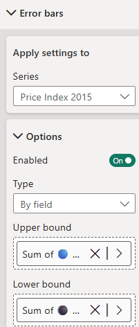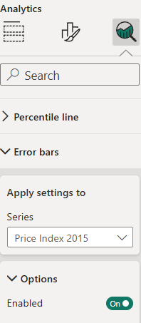 Step 4: Head to the analytics section of PBI and enable error bars.