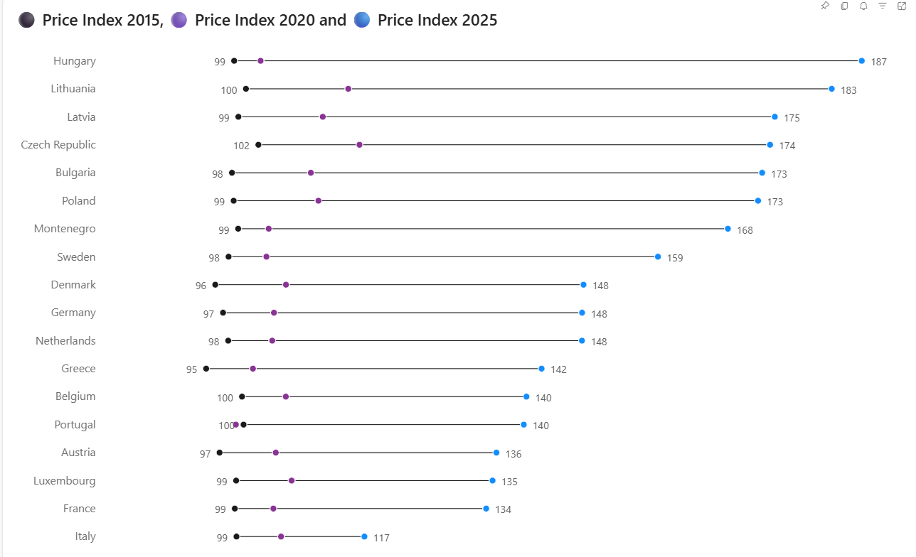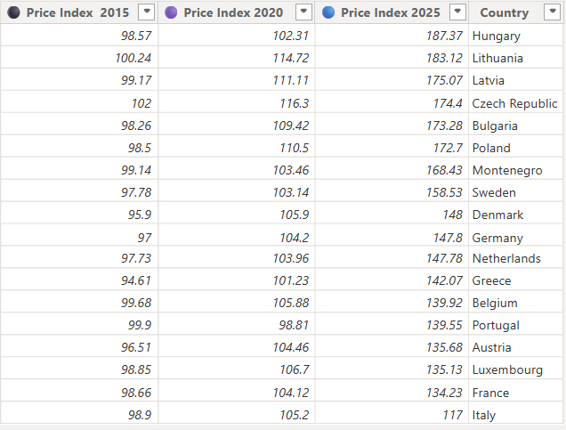 - 3 measures - Price Index 2015, Price Index 2020, Price Index 2025