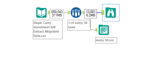 Initially I had a lot of problems when loading the data into Power BI and kept receiving an error message. I considered pivoting to another dashboard to recreate but instead decided to persist as I found it to be an interesting dashboard. The size of the csv seemed to be a problem, so I inputted the data into Alteryx and used the sample tool to keep 1 of every 50 rows.