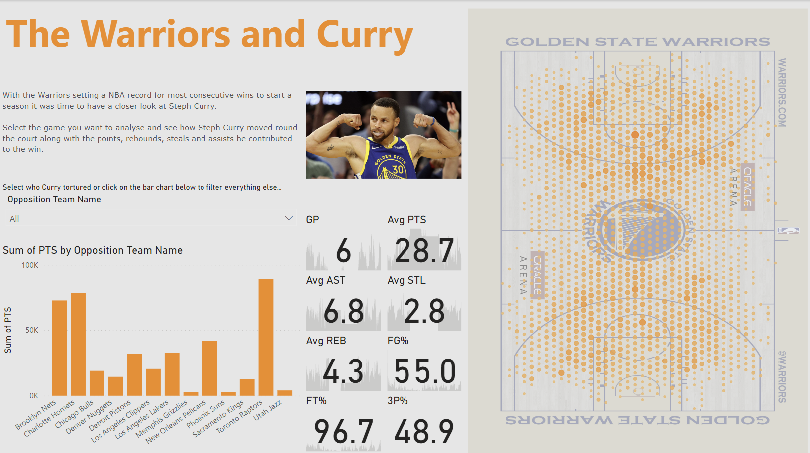 The second day of dashboard week was a Power BI task. I was tasked with recreating Carl Allchin's 'The Warriors and Curry' Tableau dashboard on Power BI.