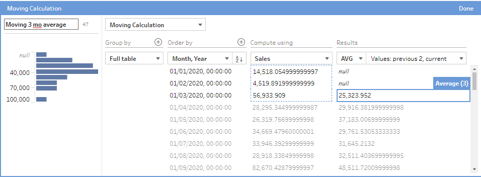 Order By: This is the date bit that you want to order your calculations by. This is helpful because it orders your dates for you, so you don't need to rank your dates in order before doing your moving calculation. (Make sure you do an ascending order by).