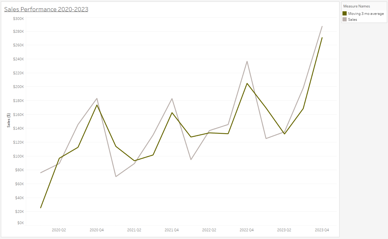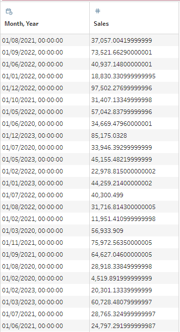 You can follow along if you breakdown your dataset of sales, by month and year. With the superstore dataset, I used a datetrunc() function and an aggregation tool to achieve the above. Each record needs to be an aggregation of sales by month and year.