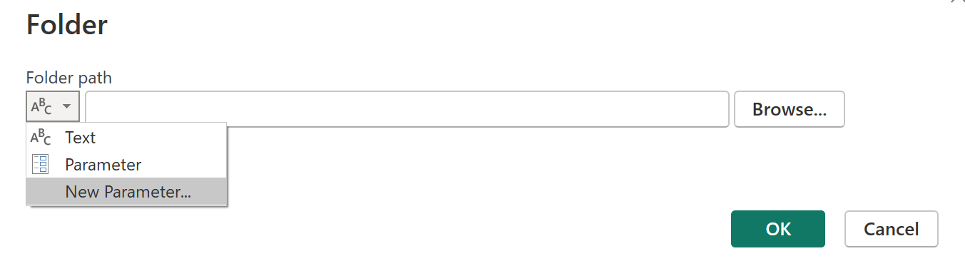 Then, past your file path into the field (remember to remove the quotation marks on either side!) and click on 'New Parameter' under the 'Folder path' title.