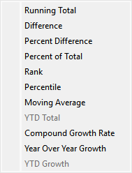 However, in Tableau Next, the available Quick Table Calculations were limited to: