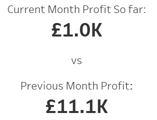 We can see that the business had about £1k profit so far this month, but so what? We don't know whether this is good or bad compared to their usual performance - this is where bringing in the profit from the prior month might come in handy.