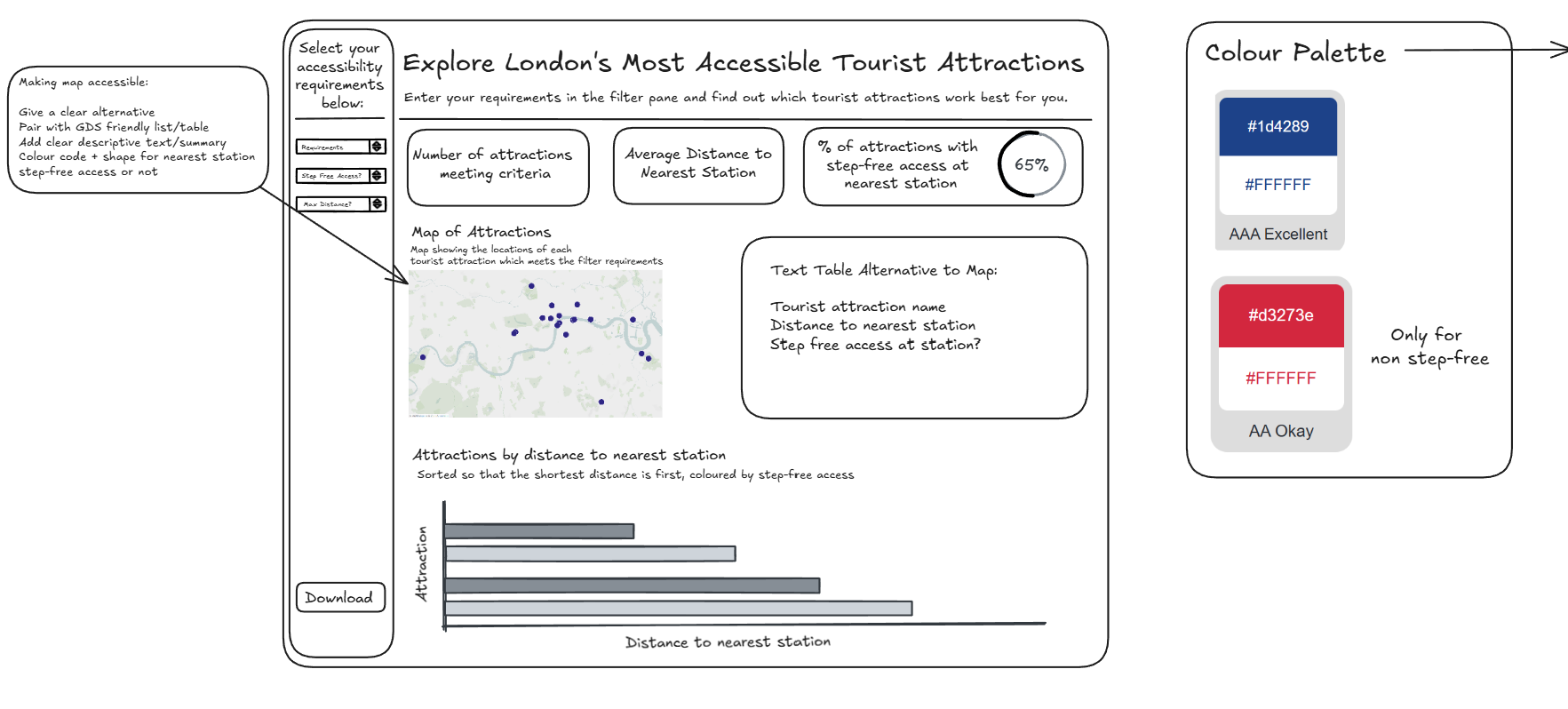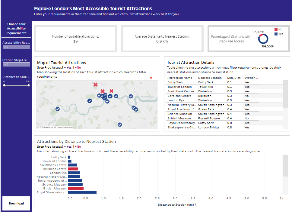 Scenario: The London City Council and GDS have opened a new bid for accessible data visualisation services. You’re submitting a pitch using real-world public data to showcase how you meet WCAG 2.2 and GDS accessibility standards. They’ve asked for a real dashboard built using infrastructure or social inclusion data — so you’ve chosen the London Accessibility dataset as your example.
