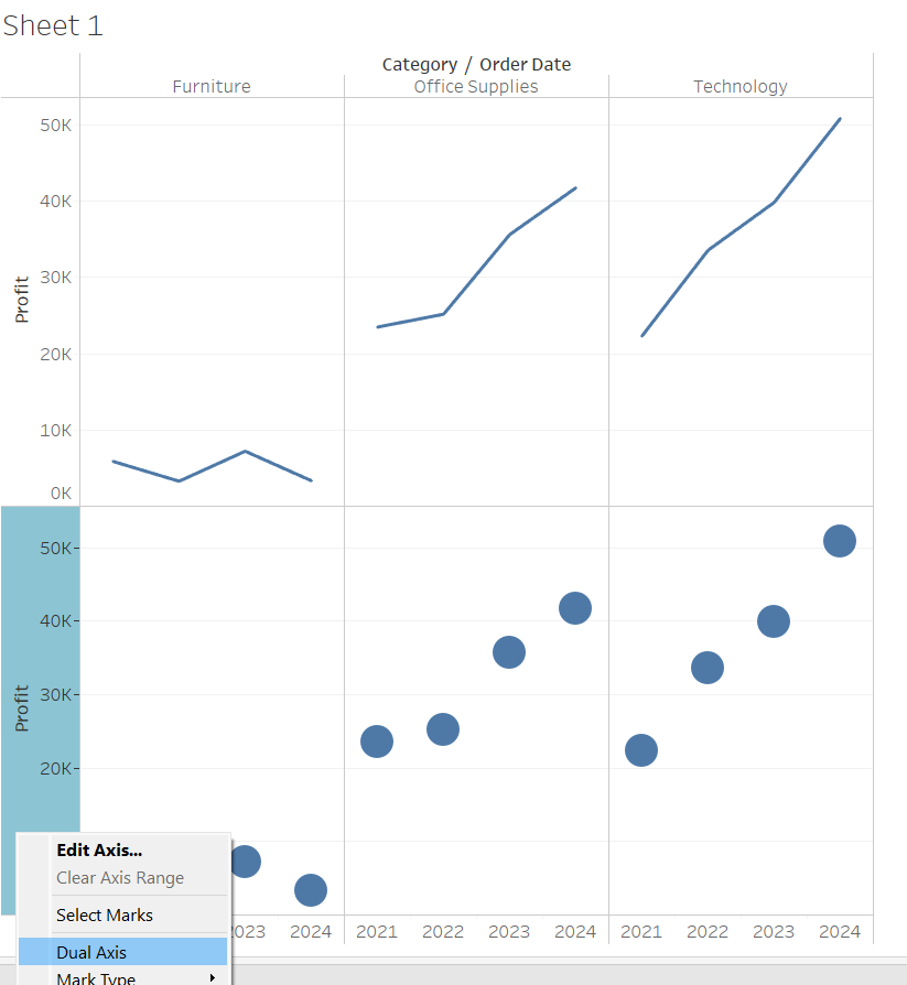 Once you've selected dual axis, synchronised the axis and hidden the right header, you should be left with this: