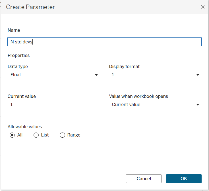 Step 4: Create a control parameter which will allow us to control the size of our reference band (how many standard deviations away from the mean we want it to be).