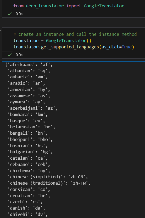 Next, I'd like to check the supported language code to translate. I will import the GoogleTranslator method from the deep_translator package that we installed in the first part.