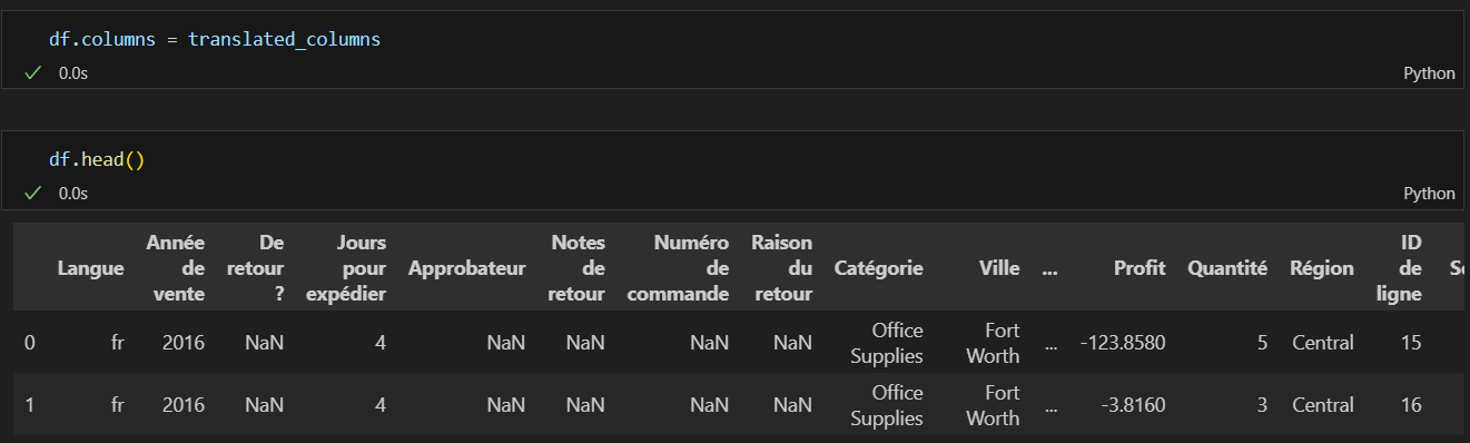 I used Visual Studio Code for Jupyter Notebook, but you can use any Python IDEs to test the script. The script is quite similar to the script I shared in the previous blog. The difference is that now we translate the column name, not the data values.