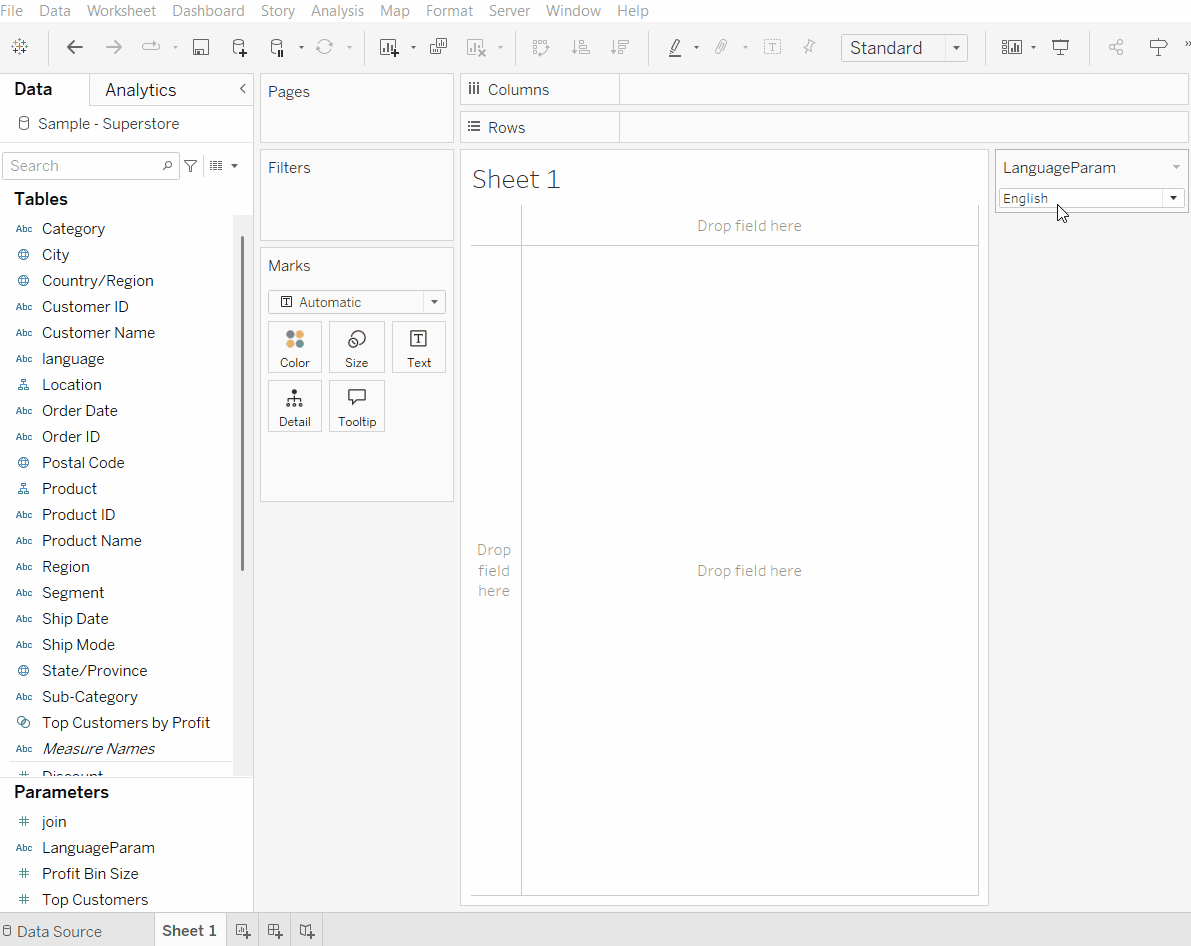 Can I use the parameter in Tableau Desktop to dynamically switch the language?