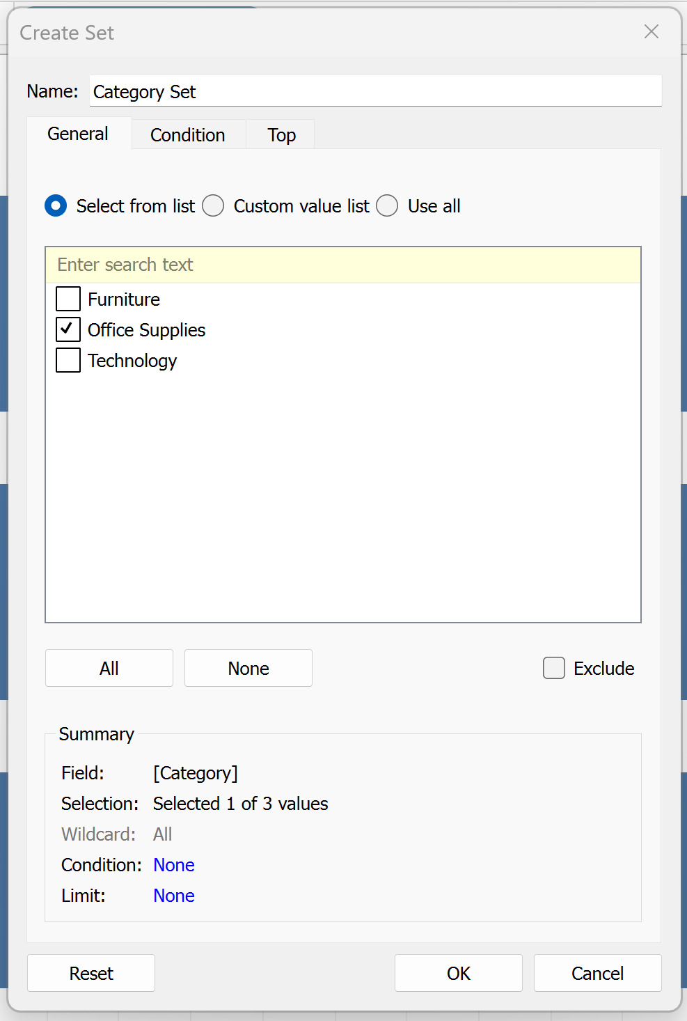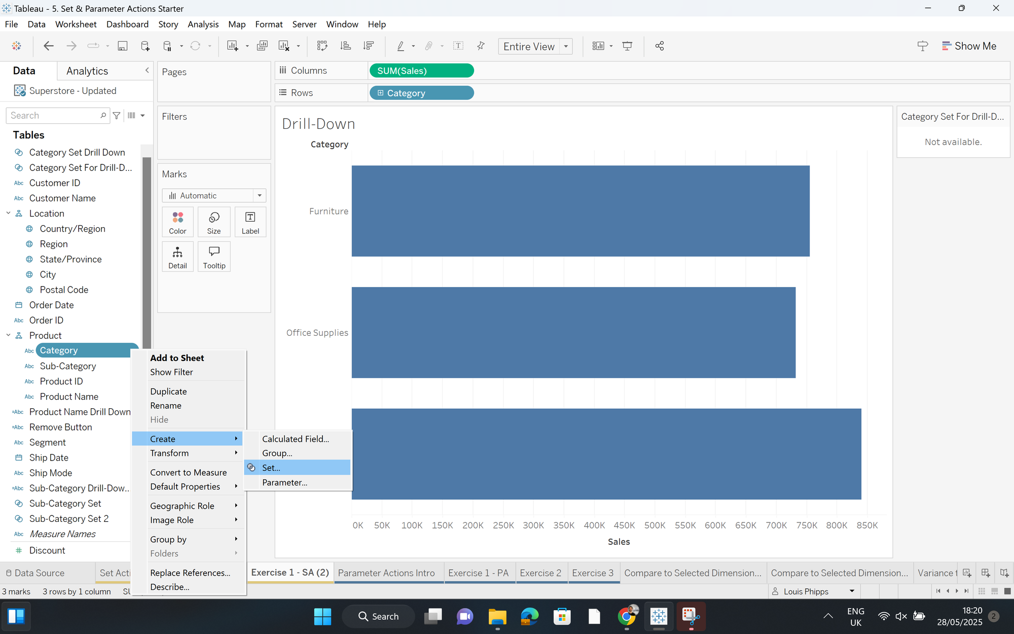 - Click on your set in the data pane and select "Show Set"