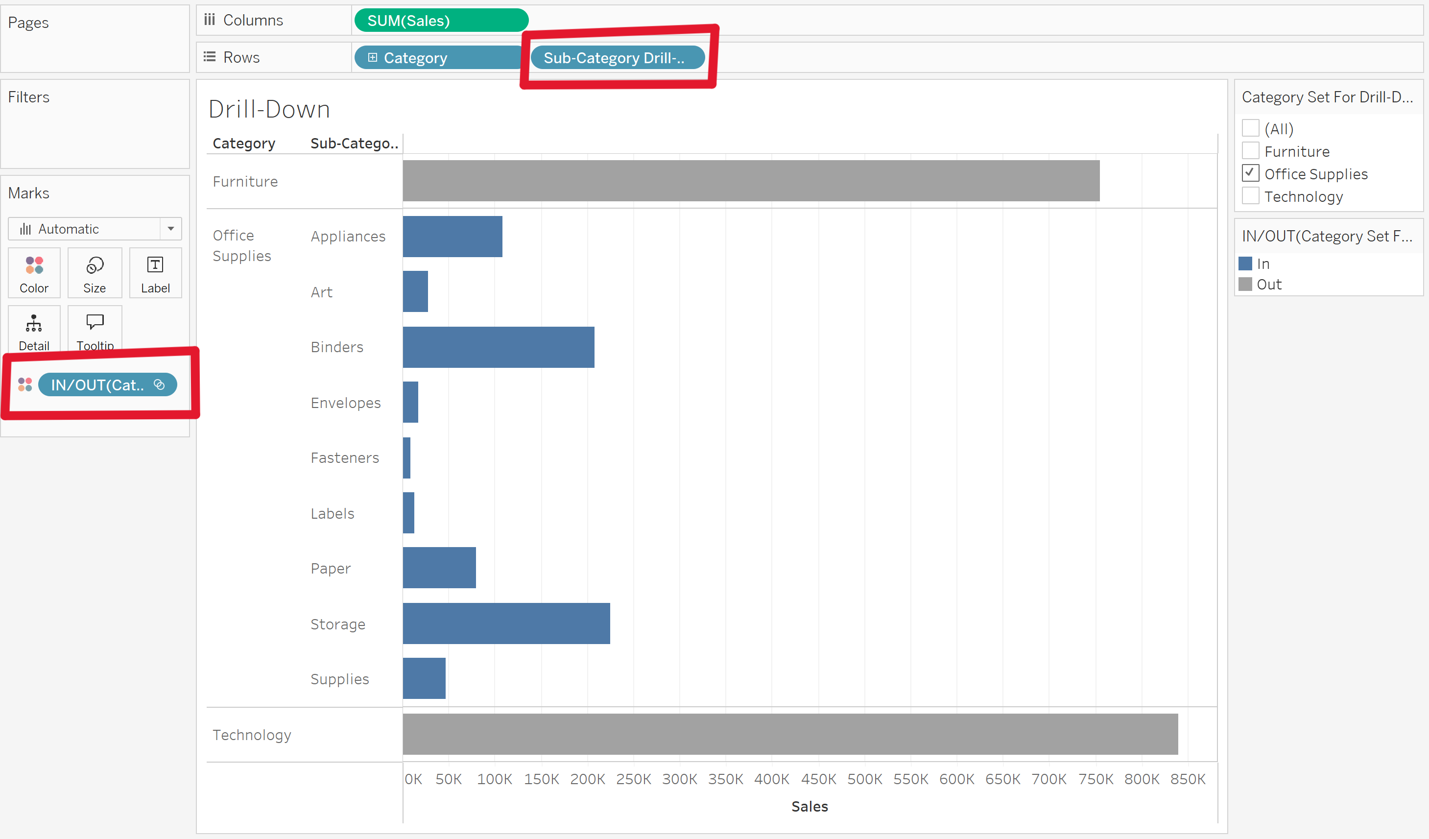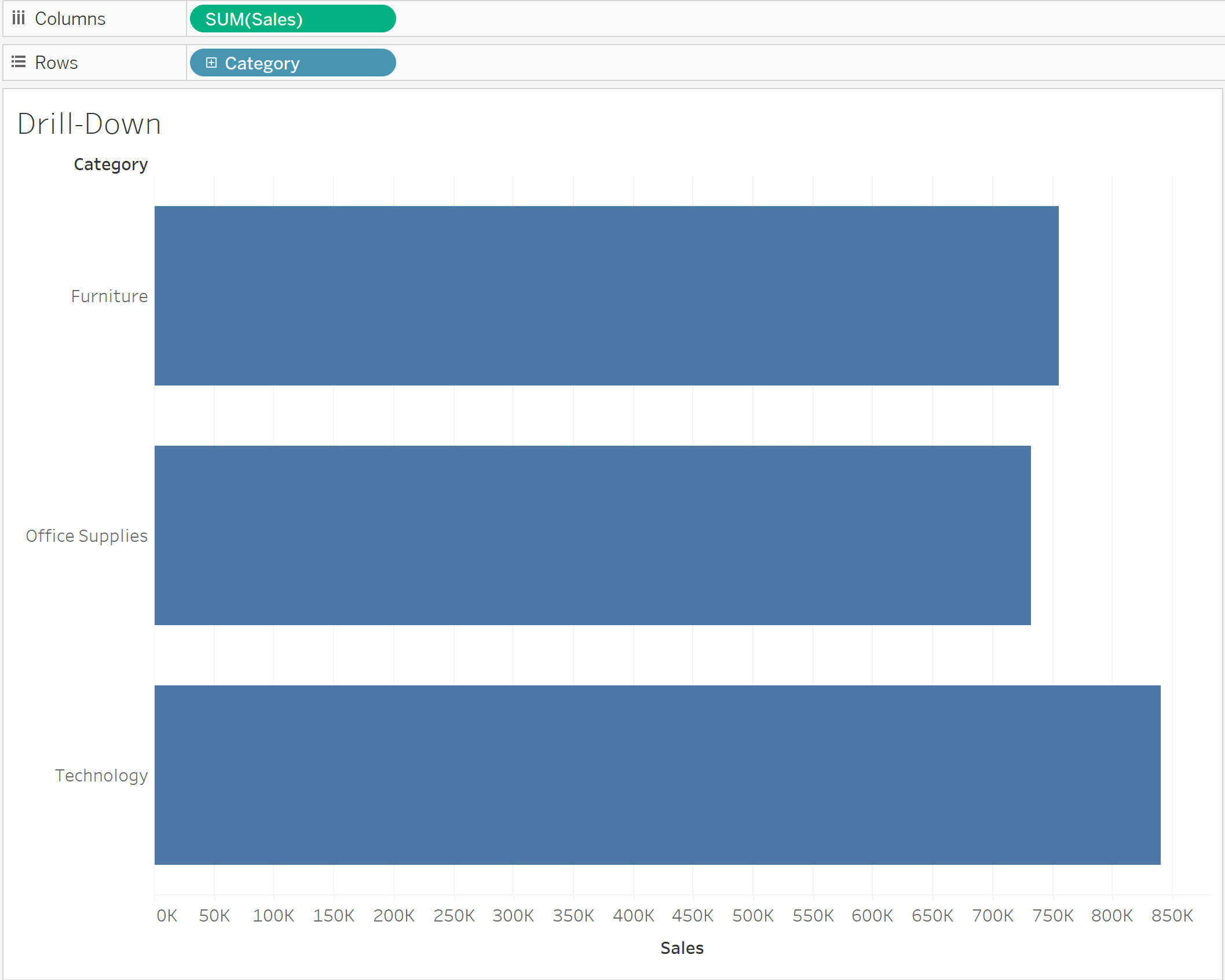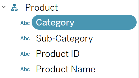 In this example we may want to click on "Category" and see all of it's "Sub-Categories" or click on "Sub-Categories" and see all of it's "Product IDs". These drill-downs will not work unless Tableau knows these are a part of a hierarchy.