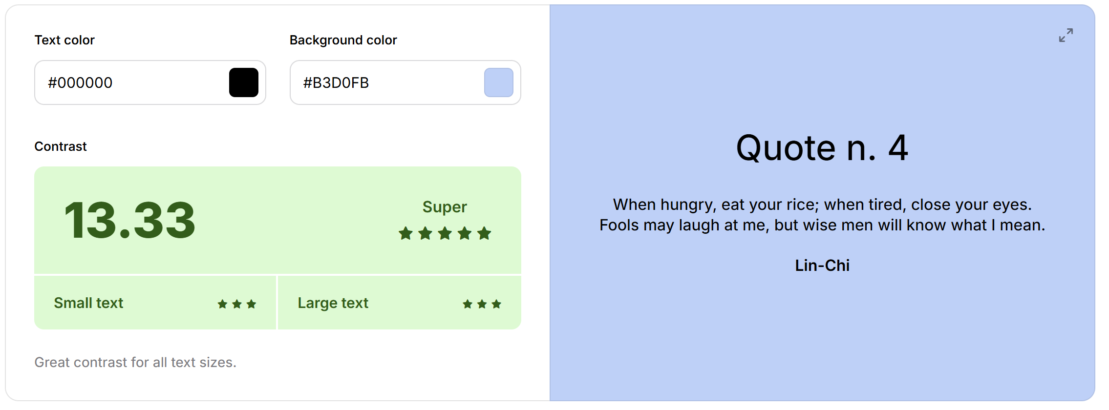 Although I'm not a huge fan of the colour scheme myself, it passes the "colour contrast test" (as shown below). I suppose whether I like the colours or not isn't important, but whether someone with colour-contrast blindness is able read it. So I was happy to stick with it.