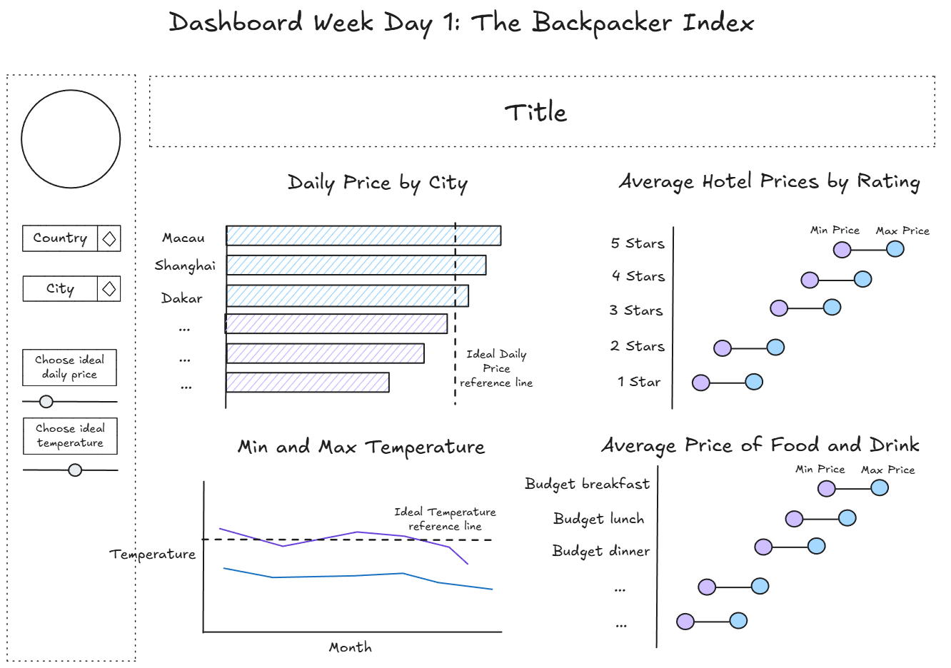 For the first day of Dashboard week, we were tasked with web-scraping travel data from the Backpacker Index site to help travellers find the best-value destinations. We had to collect both summary and detailed information from each city’s page to build a dashboard that would help travellers plan their budget-friendly adventures.
