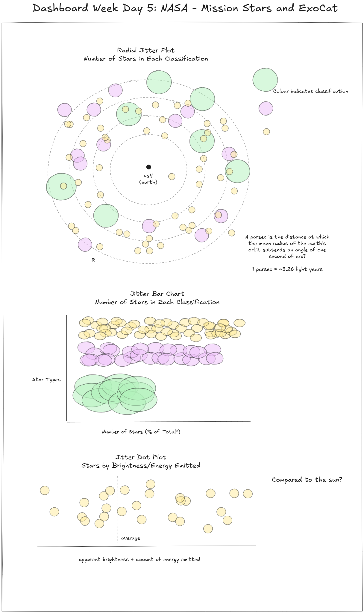 All in all, I really enjoyed the challenge today! As mentioned earlier, I really like astronomy so this was right up my alley. I also really liked how I was able to challenge myself creatively and make some charts I haven’t tried before. To create the jitter bar charts, I followed this tutorial by Toan Hoang.
