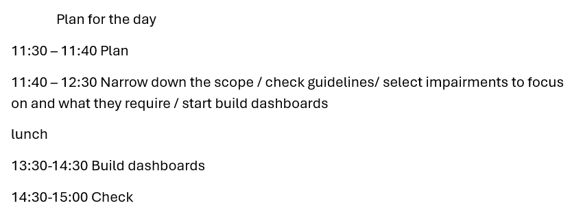 I then selected the impairments I wanted to focus on, what their difficulties interacting with Tableau may be and what design choices to implement to address these difficulties.