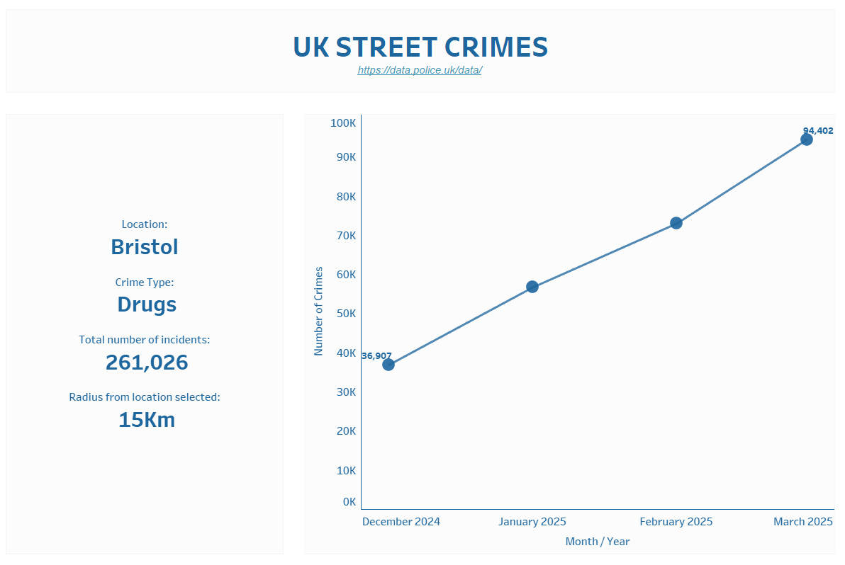 As mentioned, I did keep to my plan fairly well, but at lunch it was one challenge after the next, first the deletion scare, then implementing the tableau output tool. The Tableau output tool allowed me to upload my data source to tableau server, which I did successfully do, however the flow took a while to run and doing this for the first time ensured a lot of my tableau build time was eaten into. Furthermore, once I started building the dashboard it became clear to me that creating a map was going to be outside of the scope but I did want to be able to see the data change so I opted for a line chart instead.