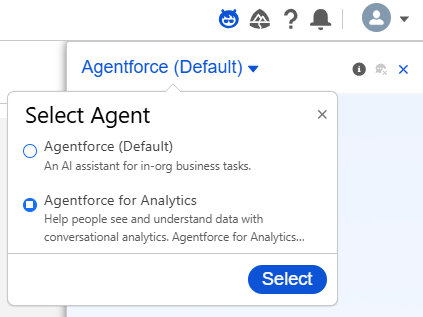 It can be found on the top right of the Toolbar. Just make sure you change Agentforce (Default) to Agentforce for Analytics