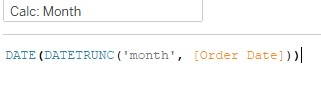 - What it means: Roll up the order date to the month level, and preserve the output as a date. For more information about date functions, you can read my blog here: https://www.thedataschool.co.uk/samantha-fitzsimmons/dates/